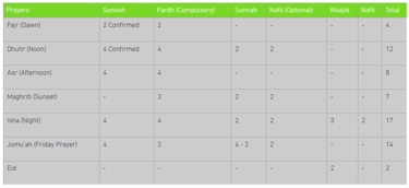 These prayers consist of different units which are shown in the table below: